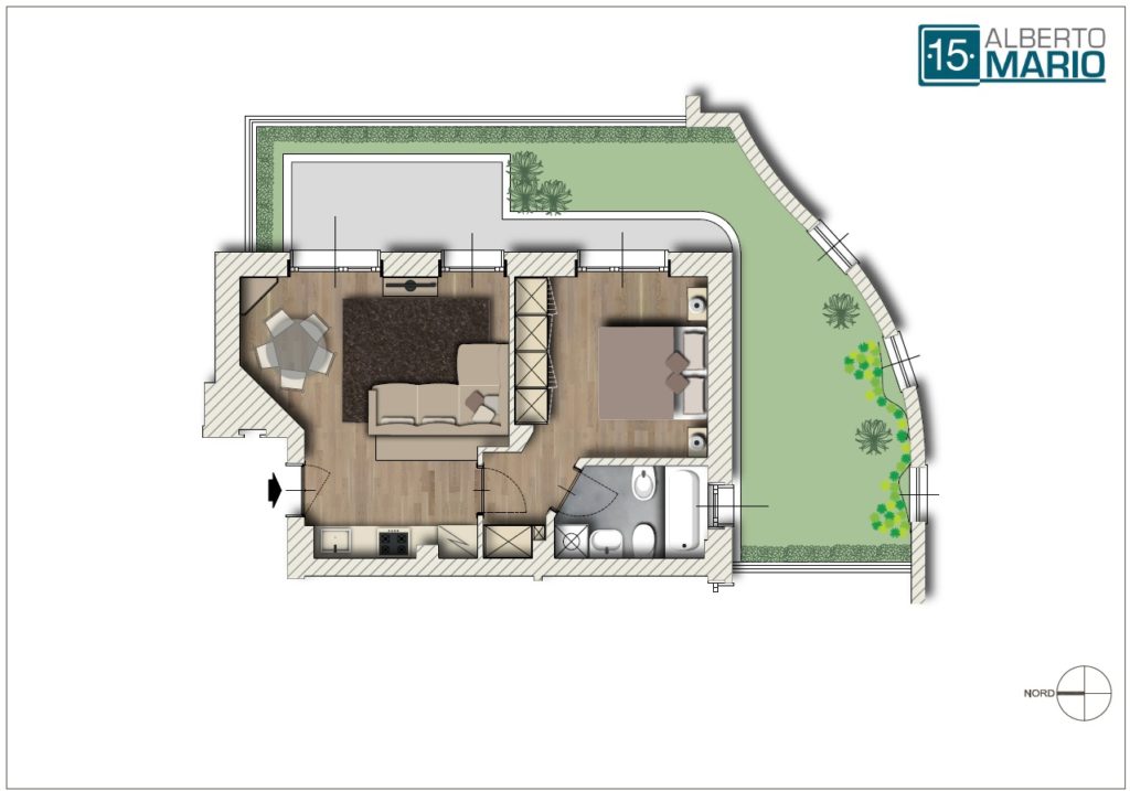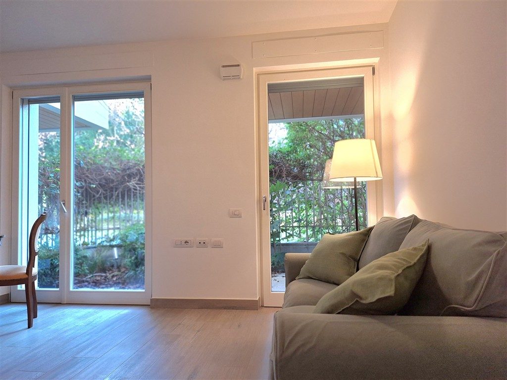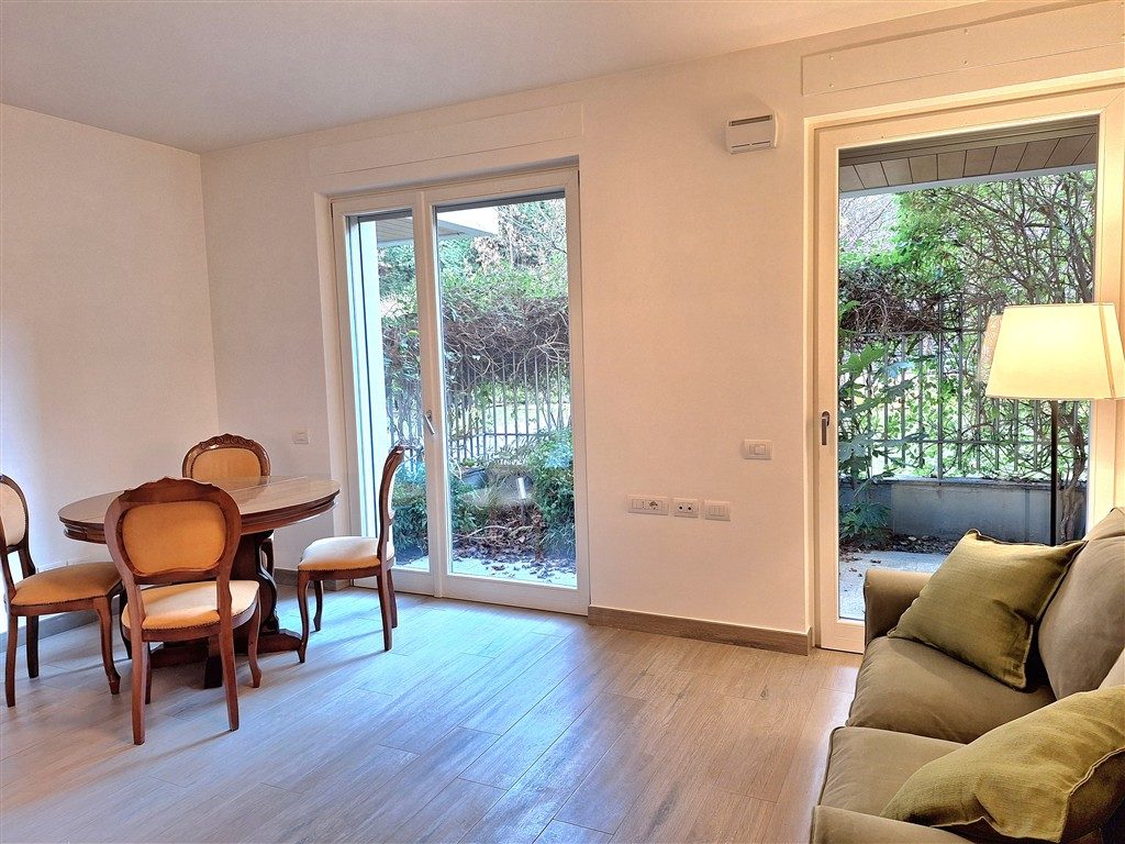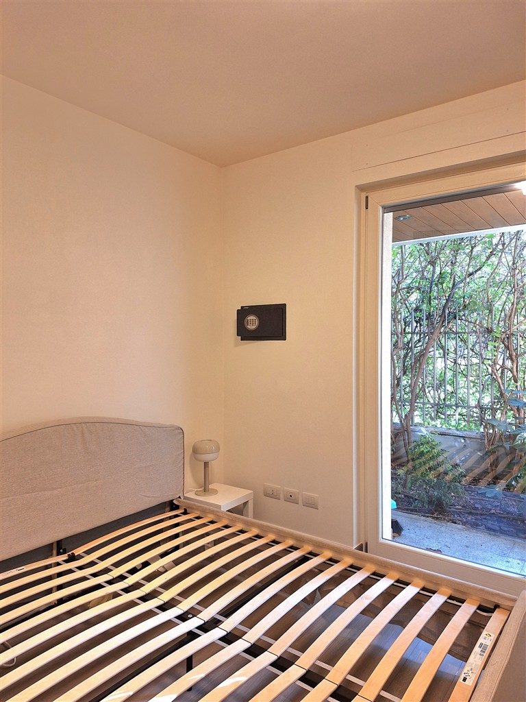 Il living, con cucina a vista, si apre su un delizioso giardinetto privato e recintato, con un piccolo spazio terrazzato dove alloggiare un tavolo, il tutto affacciato sull’ampio verde condominiale. Un disimpegno armadiato dà accesso alla zona notte, con una spaziosa camera da letto e il bagno con finestra.