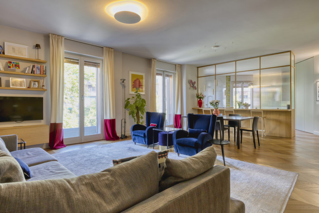 Qui, al quarto piano di un signorile stabile che ha appena visto terminare un accurato intervento di rinnovo delle facciate, proponiamo un luminosissimo appartamento in perfette condizioni di manutenzione di ca. 170 mq, caratterizzato da finiture interne di grande qualità e di gusto e design contemporanei.